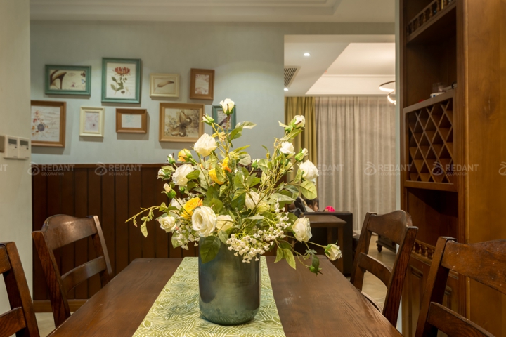 美式装修的地面主要采用仿古砖、做旧地板来进行装饰,打造打造出一种温馨自然的家居感觉。地面的地脚线设计要与门套线相连接,这样能够让整个空间线条更加流畅。
