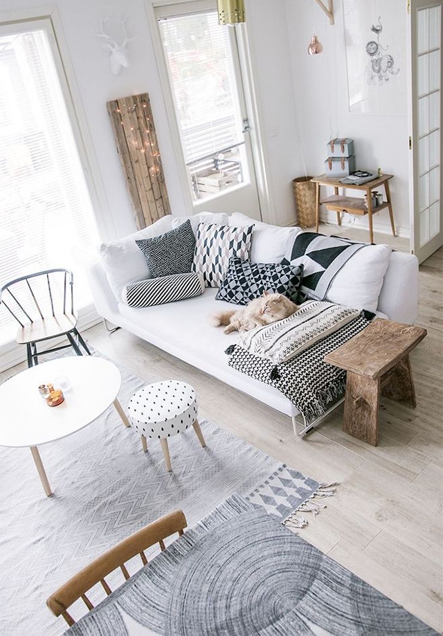 白色永远是北欧众多色彩里用得最多的一种颜色,但白色本身并没有冷暖倾向,严格意义上来说,并不算色彩,但是,它却是最万能的。白色作为空间的底色使用,可以营造出一种轻盈,空旷,透气的感觉来。另外,白色有利于采光,能给客厅一种“阳光明媚”的清爽感。