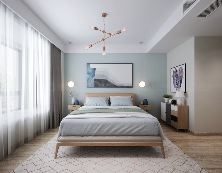 本案效果图最终呈现出来后,女主人很开心,她说这就是她想要的家的样子。其实现在很多年轻人比较喜欢这个调性的风格,简简单单却不失温馨,适合下班后的二人世界。所以男主人说装修的朋友们不要再纠结苏州装修公司哪家好了,直接选择红蚂蚁装饰吧。