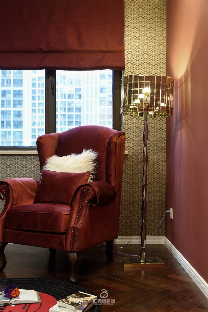 对高品质生活有一定追求的刘女士,学习钢琴多年,新家的装修自然要为这个好伙伴找一处地方安放,同时在这个独立的房间内,找一处靠窗的角落,用沉稳的暗红搭建出静谧的一隅,闲暇之余在这里听听音乐、看看书,不失为繁忙工作之后的一种放松与享受。