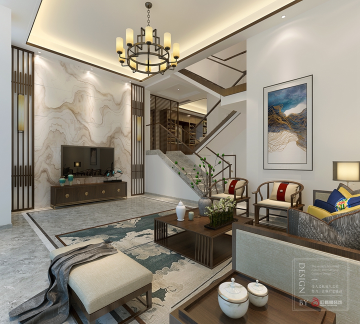 本案风格定义是新中式,在思考这套别墅的设计方案时,考虑的因素不仅仅是空间利用,同时也极其注重新中式风格的营造。我们所理解的新中式,并非是纯粹的在空间内堆积明清元素,而是通过中式古典元素,表达对清雅含蓄、端庄丰华的东方精神意蕴境界的追求。