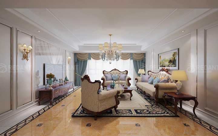 在简欧风格装修中,比较常用的材料是石、铁、木等等。我们都知道,木材具有沉稳厚重的特点,所以是装修中运用最广泛的材料。不过铁给我们的印象也比较深刻,因为它可以传达出一种怀旧、复古的感觉,但不能使用太多。而石材也可以给人一种华丽的质感。所以简欧风格的装修可以给人呈现出一种非常富丽的感觉。